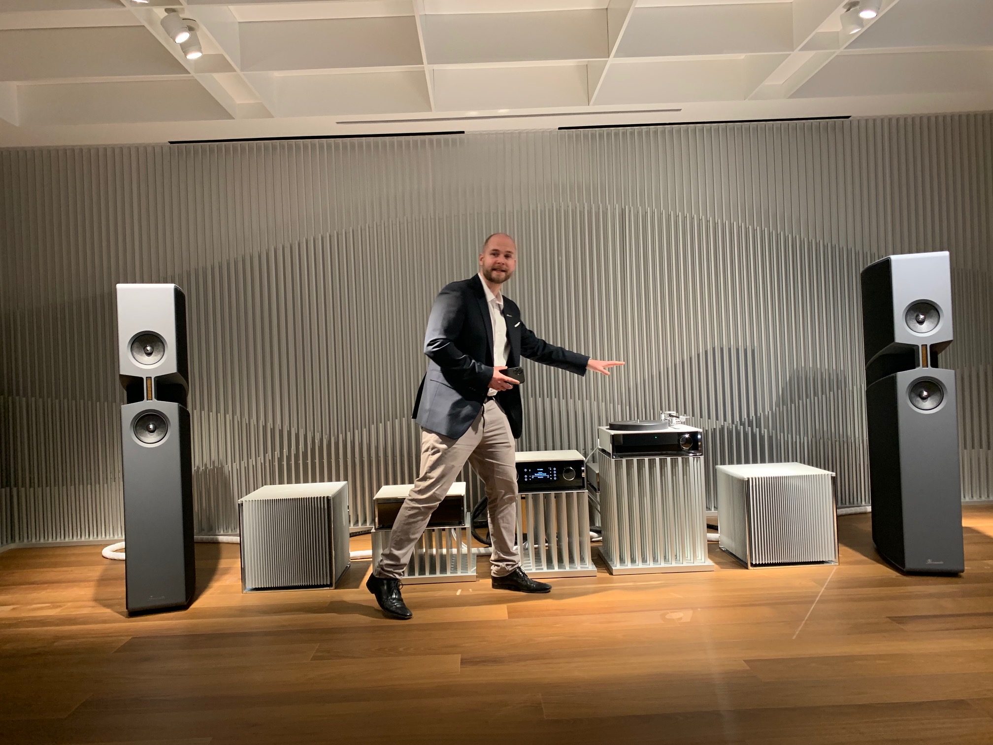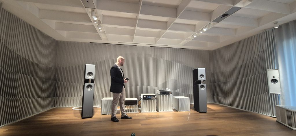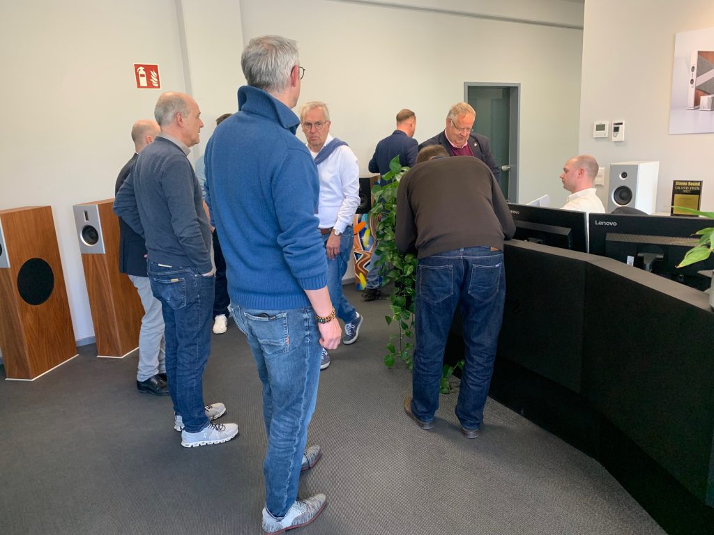 Im Anschluss folgte eine Führung durch den Produktionsbereich, bei der die Präzision und Liebe zum Detail, mit der die Audiosysteme gefertigt werden, eindrucksvoll dargestellt wurde. Die Kombination aus modernster Technologie und sorgfältiger Handarbeit wurden hier ausführlich erklärt.